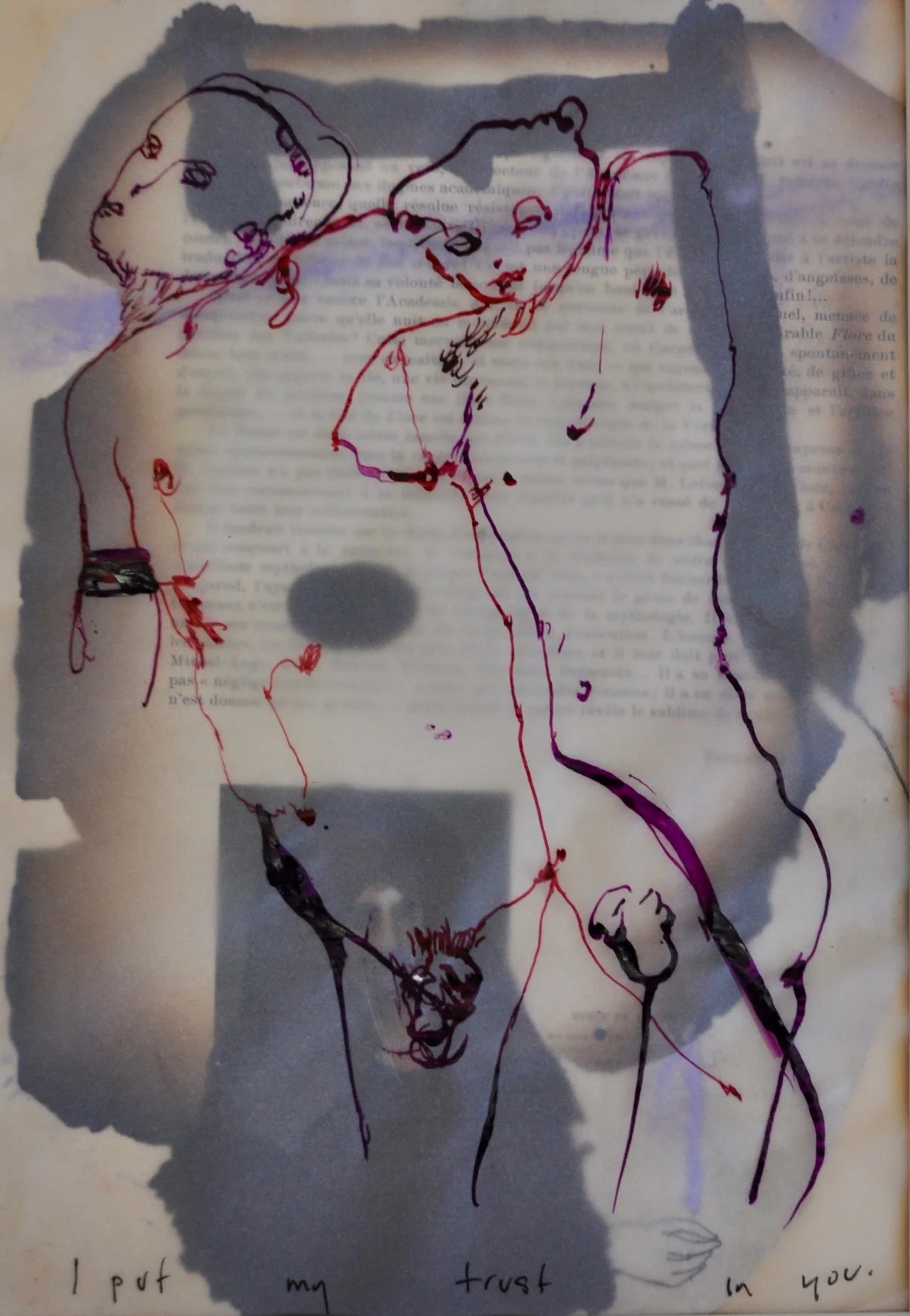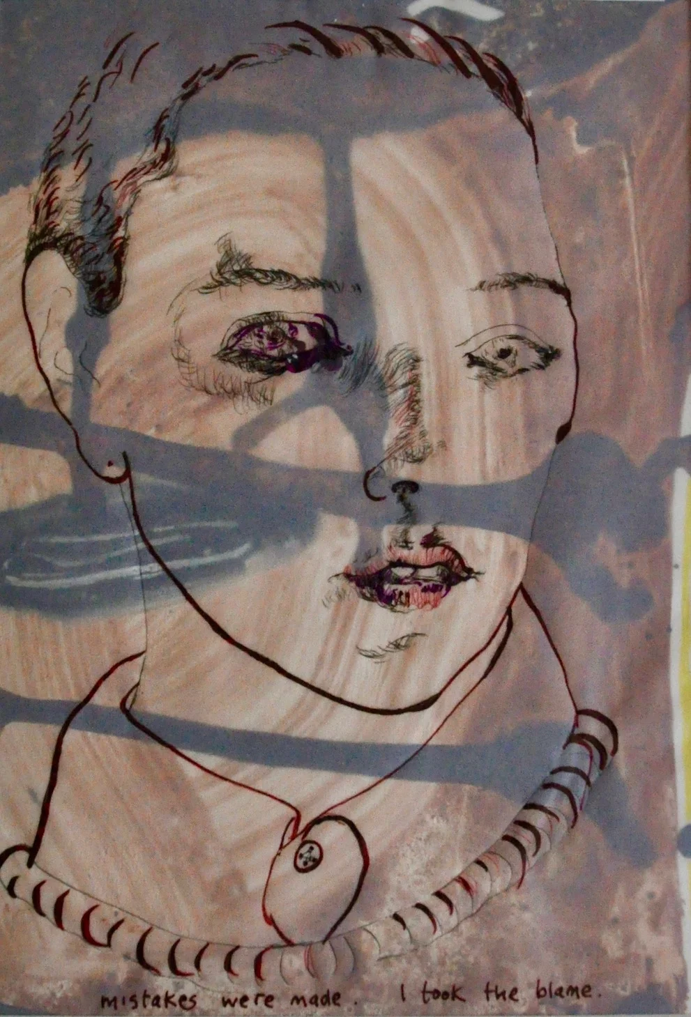This series began at the Agora Collective, Berlin on a studio swap there. I wanted to discover a new way for my drawing to shape my painting back home , I took no materials and used what I could borrow, to make purely abstract pages . I discovered the use of tracing paper as a means to play with relentless drawings made in the Museums and on trams and U Bahn ( see later ones here ). The first ones here are recent ones of friends, family, heroines and father figures.. All are oil, pigment, pastel on paper with ink on Tracing paper. All 30 x 21 cm . Drawing with headphones on and lyrics from favourite artists,