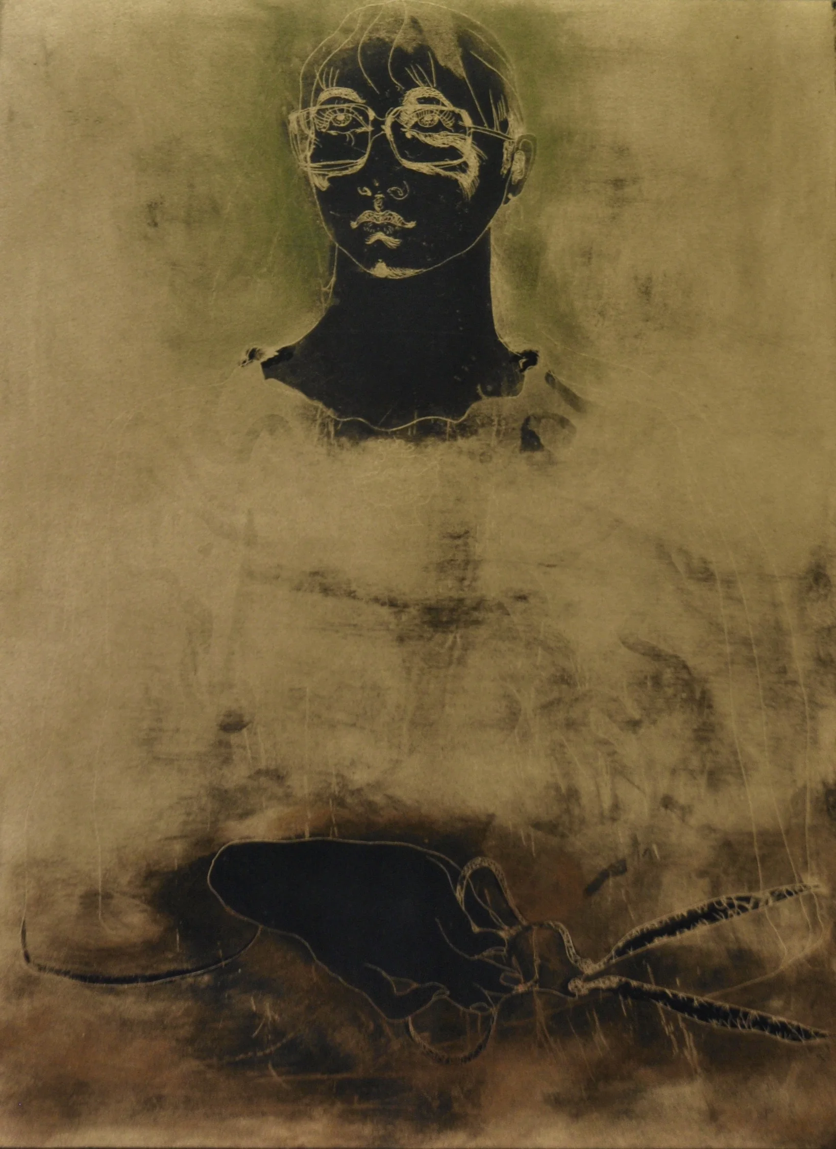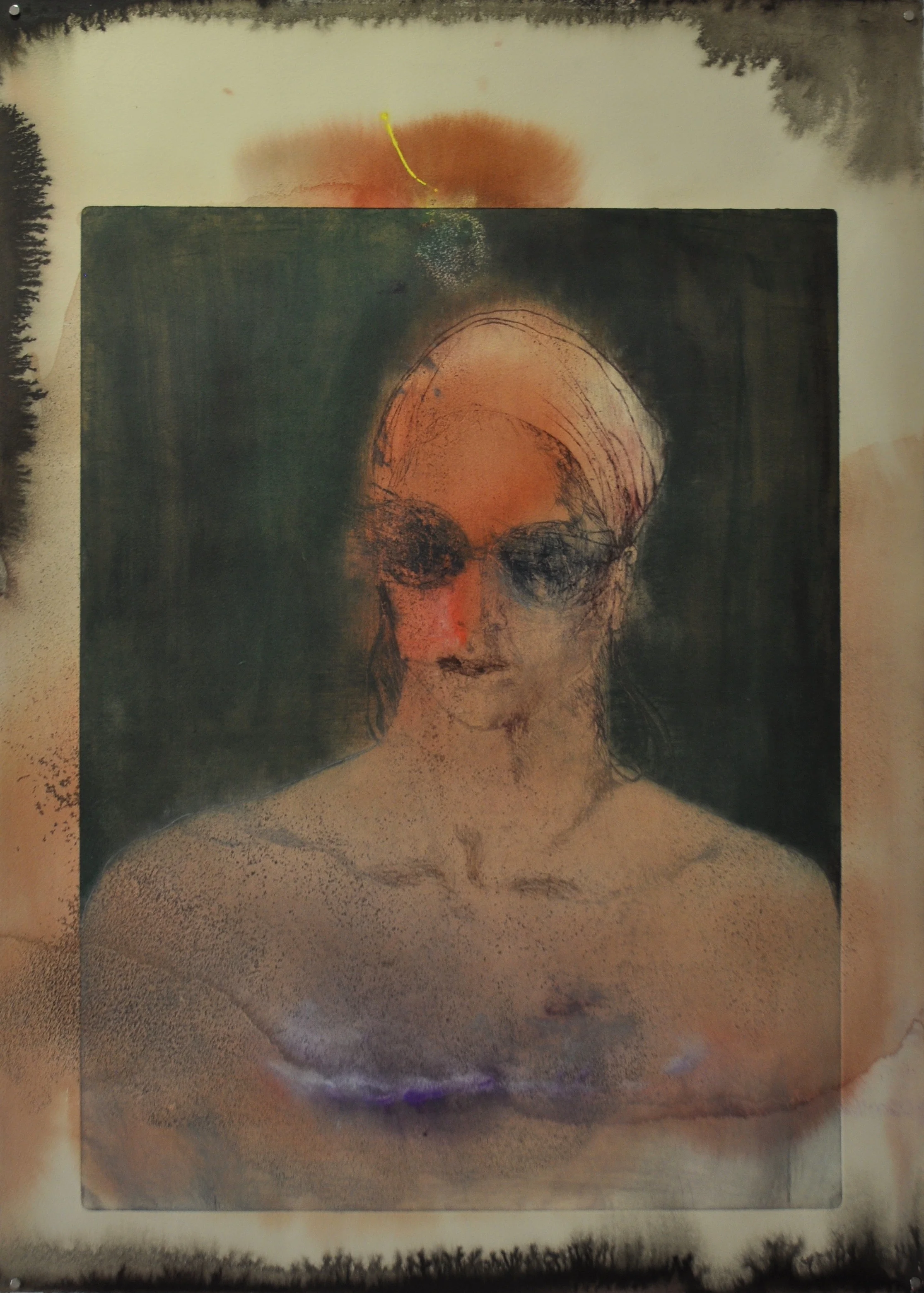 ‘Daughter, terre rose remix’ drypoint with watercolour and ink unique version 50 x 65cm