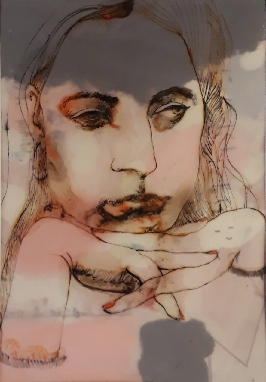 All works - Ink and oil paint on tracing paper, floated over mixed media painting